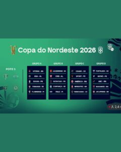 A Confederação Brasileira de Futebol (CBF) definiu hoje (3), por meio de sorteio, os grupos que compõem a Copa do Nordeste 2026. A Paraíba contará com 2 representantes neste ano, que são Sousa e Botafogo-PB. O Dinossauro ficou no Grupo A, junto com ASA-AL, Vitória-BA, Itabaina-SE e Fluminense-PI. O Belo estará no Grupo B, com Juazeirense-BA, CRB-AL, Confiança-SE e Fluminense-PI. Vale lembrar que os clubes de mesmo grupo não irão se enfrentar na primeira fase da competição e os componense do Grupo A enfrentaram os que estão no Grupo B. Os que ficaram no Grupo C (Ceará-CE, Sport-PE, América-RN, Imperatriz-MA e Ferroviário-CE) vão encarar os que estão no Grupo D (Fortaleza-CE, Retrô-PE, ABC-RN, Maranhão-MA e Jacuipense-BA).